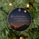 Dieser religiöse Weihnachtsschmuck ist (auf beiden Seiten) mit einem digital veränderten Bild eines Nachthimmels mit bunten, silhouetted Baumkronen unter einem hellen Stern im Osten gestaltet. Die Schrift von Luke 2:14 wird hinzugefügt, in der es heißt: "Ruhm Gott im höchsten, und auf Erden Frieden für mich, auf dem seine Gunst Erholungen." Eine zeitlose Nachricht und ein einzigartiges Bild für ein besonderes Geschenk! Gerne können Sie mich über Zazzle kontaktieren, wenn Sie Fragen zu diesem Ornament haben oder Ihnen helfen möchten, dieses Design auf ein anderes Ornament oder ein anderes Objekt zu übertragen. Ich helfe Ihnen gerne, das Bild und die Formulierung korrekt zu gestalten.