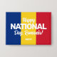 Feiern Sie den Rumänischen Unabhängigkeitstag mit diesem markanten 1. Dezember-Button, der die blauen, gelben und roten Balken der rumänischen Nationalflagge enthält. Passen Sie Ihre Wünsche an. Design © W.H. Sim. Weitere Informationen unter zazzle.com/expressionsoccasions