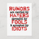 Zitat: Gerüchte werden von Hasser getragen (verbreitet) von Narren und von Idioten akzeptiert. (das falsch geschriebene Wort ist für künstlerischen Ausdruck absichtlich). Sie haben die Möglichkeit zu korrigieren. Autor: Elizabeth Medina Um Design, Form oder Größe zu ändern, klicken Sie auf "CUSTOMIZE IT", nachdem Sie mit Ihrem Design fertig sind, wählen Sie Quantität und klicken Sie auf "ADD TO CART" um zu kaufen. Je mehr man bestellt, desto mehr rette man, selbst wenn man sich mit verschiedenen Designs mischt. DIE ZUFRIEDENHEIT IST GARANTIERT ODER IHR GELD ZURÜCK! Passen Sie es selbst an, indem Sie Ihre eigenen Fotos, Kunstwerke, Lieblingssätze oder Firmenlogos hinzufügen. Das Limit ist deine Fantasie! Gut zum Weiterverkauf geeignet. Der Erwerb eines Geschmacksmusters stellt kein Urheberrecht dar. Jede Kunst ist Eigentum von Elizabeth Medina, sofern nicht anders erwähnt. Wenn Sie Fragen oder Schwierigkeiten mit einer Bestellung haben, rufen Sie bitte TEL: 1-888-892-9953 in den USA oder (408) 983-2800 International an. Verlinken Sie diese oder so viele andere Lieblings-Artikel, die Sie möchten, zu Ihrem Facebook, Twitter, Blog, persönliche Website, Business Website & mehr. Twitter eines Artikels und machen $$. ist kostenlos zu registrieren. SEHR LEICHT ZU VERLINKEN! Kontaktieren Sie den Kundendienst, um sich zu registrieren.