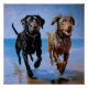 "Run free, Run Together" Beachside Best Buddies. Die Bindung zwischen zwei spielerischen Gefährten, einem Labrador und einem Vizsla. Diese Strandlandschaft strahlt das Glück und das Wesen der Freiheit aus, perfekt für Hundefreunde. Die beiden Hunde sprinten fröhlich an einem sonnenbeleuchteten Strand entlang, ihre eifrigen Ausdrücke und die fließende Bewegung schaffen ein lebendiges, lebendiges Stück.
