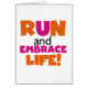 Wenn Sie Liebe laufen, 5 Ks laufen, 10Ks, Halbmarathons oder Marathons, werden Sie diese farbenfrohe Textgestaltung in Orange und Hot-Rosa, dass Lauf und Embrace Life Liebe! Lauf und Embrace Life T - Shirt, Hoodies, Magnete, Tasten, Karten, Aufkleber, Schlüsselketten und viele andere Gegenstände für Läufer, die ein helles, farbenfrohe Laufdesign Liebe!