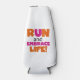 Lauf und Embrace Life Text T - Shirt, Hoodies, Magnete, Mousepads, Karten, Aufkleber, Schlüsselketten, Buttons, Magnete, Papier-Teller und Servietten, Geschenktaschen, Bonbons, Uhren und viele andere Gegenstände mit einem hellen rosa und orangefarbenen Design. Diese Running-Theme-Produkte machen großartige Geschenke für jeden, der zum Spaß läuft, läuft Track, Marathons, Halbmarathons, 10Ks, oder 5Ks!