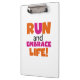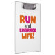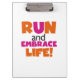 Run und Embrace Life Orange Pink Klemmbrett