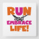 Lauf und Embrace Life Text T - Shirt, Hoodies, Magnete, Mousepads, Karten, Aufkleber, Schlüsselketten, Buttons, Magnete, Papier-Teller und Servietten, Geschenktaschen, Bonbons, Uhren und viele andere Gegenstände mit einem hellen rosa und orangefarbenen Design. Diese Running-Theme-Produkte machen großartige Geschenke für jeden, der zum Spaß läuft, läuft Track, Marathons, Halbmarathons, 10Ks, oder 5Ks!
