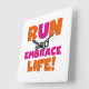 Run und Embrace Life Orange Pink Quadratische Wanduhr