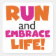 Run und Embrace Life Orange Pink Quadratischer Aufkleber