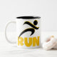 Running T - Shirt, Tasse, Taschen, Keepsakes, Tanklappen, Hoodies, und andere Kleidung und Geschenke für Läufer mit einem schwarzen Silhouette Läufer und gelben Text, dass RUN. Diese RUN Bekleidung und Geschenkartikel sind ideal für jeden, der eine 5K Ausbildung, wer nur Lieben laufen, oder jemand, der bereits mehrere Marathons erreicht hat!