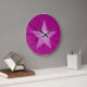 Modernes Design mit einem "leuchtenden" rosa und weißen Stern auf einem "glühenden" Hintergrund. Wall Uhr mit einem rosa und weiß anpassbaren Design für Sie, um mit Ihrem eigenen Text, Bildern und Ideen zu personalisieren. Bitte beachten Sie, dass es sich um ein gedrucktes Bild handelt, das mit Originalfotos und Digitaltechnik erstellt wurde, es nicht glänzt oder echte Glitzern enthält.