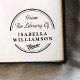 Rund botanisch aus der Bibliothek des Buchzeichens Selbstfarbige Briefmarke. Diese runde Buch-Briefmarke enthält einen "From The Library Of" im Skript-Schriftart mit Ihrem Namen in Serif-Typografie und einem botanischen Blattelement unten.