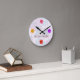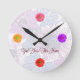 Runde Blumenwanduhr mit "Gott Text segnen dieses Zuhause" auf einem Hintergrund der Blumen und der bunten Gänseblümchen.