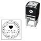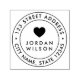 Moderne Rücksendeadresse Selbstfarbige Gummi-Briefmarke mit Herz, einem runden doppelten Rahmen für Ihre Adresse dazwischen und Ihren Namen in der Mitte. Jetzt musst du deine Adresse nie wieder schreiben. Gut für das Versenden von Briefen. Personalisieren Sie es, indem Sie den Platzhalter-Text durch Ihren Namen und Ihre Adresse ersetzen. Für weitere Optionen, wie zum Beispiel den Schriftart zu ändern, seine Größe, und um gekrümmten Text zu erweitern oder zu kontrahieren klicken Sie auf die Schaltfläche "Anpassen". *Bitte beachten Sie, dass das Zazzle-Wasserzeichen, das in der Zoomvorschau angezeigt wird, NICHT auf dem gedruckten Endprodukt erscheint. © Rosewood and Citrus