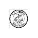 Ein Ex Libris Gummi Briefmarke Design in einem fett runden Stil und ein Lymphad (heraldisches Schiff) Motiv.
