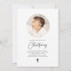 Eine moderne, minimale Weihnachts-Einladung mit einem runden Foto und dem Wort "Christening" in einem kalligraphischen Schriftart. Bitte beachten Sie, dass Sie das Wort "Weihnachten" nicht ändern können, aber Sie können alle anderen Texte in diesem Design bearbeiten. Sie können die Farbe ändern oder sie löschen und durch ein neues Textfeld ersetzen.