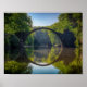 Runde Graue Felsbrücke über einen Fluss im Wald Poster