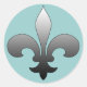 Rundaufkleber in zwei Größen, mit einem großen Lilie-Design. Dieses hier ist grau, mit einem silbernen Aussehen, und Sie können die Hintergrundfarbe an alles anpassen, was Ihnen gefällt. Die Fleur-de-lis ist eine stilisierte Lilie (auf Französisch, Fleur bedeutet Blume, und Lilie bedeutet Lilie) oder Iris, die als dekoratives Design oder Symbol verwendet wird. Es ist ein Symbol für alles, was Frankreich und Quebec, New Orleans und viele andere Orte sind.