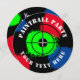 Runde Paintball Spritzer Party Einladung Vorlage. Themenparty lädt zum Kindergeburtstag, Firmenfeier, Familienausflug etc. Personalisierte Text- und Hintergrundfarben mit Crosshairs Design ein. Farbenvolles lustiges Design mit fett formatierter Typografie-Vorlage. Rundkreis geschnitten Form mit Farbaufnahmen. Machen Sie kreisförmige Einladungen für Kinder und Erwachsene. Benutzerdefinierte Einladungskarten für Freunde und Familie. Auch Spaß für Erwachsene. Doppelter Druck.