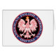 Dieses farbenfrohe runde Design beherbergt den polnischen Adler mit einer Goldkrone, dem polnischen Nationalemblem, umgeben von den Worten Polnisch Amerikanisch. Nehmen Sie Stolz auf Ihre USA und Polen Erbe.