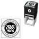 Custom Business Logo Round Schreibwriter stilvolle selbstfarbige Briefmarke Erstellen Sie Ihr eigenes Personalisiertes Business Logo Große Briefmarke, mit der Sie Ihr Firmenlogo (rund um die besten Ergebnisse) einfach in doppelkreisige Farbrahmen einfügen können, und zwei personalisierte Texte (Firmenname, Website, soziales Netzwerk, Rücksendeadresse, Kontaktinformationen oder nur eine niedliche Danksagung für Ihre Kunden) in einem Vintagen SchreibmaschinenSchriftart.
