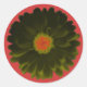 Dieses hübsche Rundaufkleber-Blatt zeigt ein Foto einer riesigen Blume, die manipuliert wurde, um eine wunderschöne schwarze Blume mit einem leuchtend roten Mittelpunkt zu schaffen. Die Blume ist auf einem roten Hintergrund.