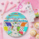 Eine Geburtstagsparty in Sea Isle City, NJ? Diese Teller, die von einheimischen Künstlern, Chris Ambrose's Acrylmalerei erstellt wurden, wären perfekt! Das Design umfasst die Seeinsel-Promenade, Banner-Flugzeug, Schildkröten, Surfbretter, Wellen, Fahrräder und vieles mehr!