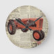 Rundwanduhr mit Bild eines Vintagen Traktors gegen Vintages Zeitungspapier.