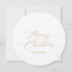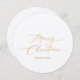 Mit dieser runden Weihnachtskarte mit elegantem Goldskript und einem klassischen Urlaubskrez auf der Rückseite können Sie Ihre Feierlichkeiten feiern. Die einzigartige, kreisförmige Form und das zeitlose Design machen es zu einem charmanten Zuhause für Freunde, Familie oder Kollegen und sorgen für Wärme und Eleganz.