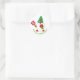 Niedlicher Weihnachtsaufkleber mit einem fröhlichen Weihnachtszwerg, der einen Weihnachtsbaumhut trägt und ein Paddel hält. Anpassbarer Text auf beiden Seiten