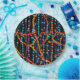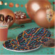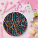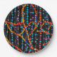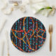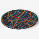 Ein abstraktes Design aus farbenfrohen Perlenfäden bedeckt diesen runden Papier-Teller.