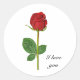 Rote Rose auf einem Aufkleber mit der Meldung "I Liebe you"