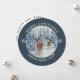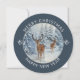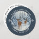 Einzigartige Weihnachtskarte mit einer weißen Winterwaldszene mit Hirsch und einem fröhlichen Weihnachts- und Sylvesterferiendesign auf einer einzigartigen ROUND-Karte! Bearbeiten Sie Ihren Namen auf der Rückseite und das aktuelle Jahr auf der Vorderseite.