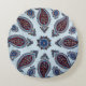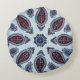 Ein stilvolles rundes Kissen mit detailgetreuem Paisley-Muster in kräftigen Rot-, Blau- und Weißtönen. Das symmetrische mandalaähnliche Design verleiht Eleganz und kulturellen Charme und ist somit ein perfektes Akzent für die Innenräume der böhmischen, Vintagen oder eklektischen Zuhause.