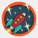 RocketSchiff Grafik Illustration rund Aufkleber. Die Hintergrundfarbe kann angepasst werden.