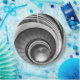Schwarz-Weiß-Rundtreppe in einer Schule in Zürich, Schweiz.