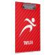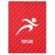 Cooler, farbenfroher Läufer, Lauf, Marathonläufer, Sprinter, Langstreckentrainer, Sportdesign auf roten, knarbig roten Diagonalstreifen. Perfektes Geschenk für Baby, Kleinkind, Kinder, Kinder, Jugendliche oder Erwachsene! Das Design wird personalisiert, indem ein Kindername oder ein eigener Text mit sportlich-sportlich-sportlich-weißem Schriftart hinzugefügt wird. Besuchen Sie unseren Shop, Birthday Party House, für mehr große personalisierbare Jungen und Mädchen Produkte!
