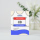 Maßgeschneiderte weiße Laufweste Postkarte, für Geburtstagswünsche, viel Glück oder einfach die Aufzeichnung einer Zeit, die bei einem Lauf- oder Leichtathletikevent oder -treffen erreicht wird.