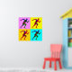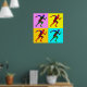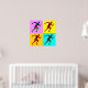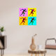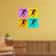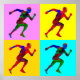 Mehrfarbige Silhouetten von Läufern im Hintergrund von mehrfarbigen Quadraten