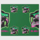 Set against bold pink and deep forest green, this rugged female athlete captures the unstoppable spirit of women’s tackle football—strength, resilience, and pure joy in every stride.