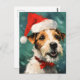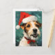 Farbenfrohe und fröhliche Weihnachtsgestaltung mit einem Russel Terrier mit einer Weihnachtsmannmütze.