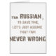 Ich bin russisch. Um die Zeit zu retten, gelassen uns nehmen Sie einfach an, dass ich nie falsch bin! Lustiger russischer Entwurf für T - Shirts und Geschenkeinzelteile durch www.VeryRussian.com