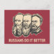 Drei der bekanntesten russischen Schriftsteller - Tolstoi, Dostojewski und Tschechow im Vintagen Stil der kommunistischen Propaganda Plakate mit Marx, Engels und Lenin.