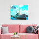 Eine digitale Darstellung der russischen Cruiser Aurora stürmte am Fluss Neva in St. Petersburg. Kyrillischer Text "К е й р р Nachlesen von Nachlesen" (The Cruiser AURORA) und "Nachforsten -Nachfolger -Nachfolger" (St. Petersbutg) erscheint ebenfalls. Die Aurora ist ein Symbol der russischen Oktoberrevolution von 1917. Zur Zeit der früheren Februar-Revolution wurde die Aurora im Neva-Fluss in Petrograd (St. Petersburg) angedockt, später in Leningrad umbenannt, um sie zu reparieren. Ein Teil der Crew des Schiffes war an der Revolution beteiligt, die zur Abdankung von Zar Nikolaus II führte. Auf dem Schiff wurde ein revolutionäres Komitee gegründet, und der Großteil der Crew schloss sich Lenins Bolschewiken an, die sich auf eine kommunistische Revolution vorbereiten. Am 25. Oktober 1917 um 21.45 Uhr feuerte die Aurora eine leere Runde aus ihrer Waffe ab, um den Beginn des Angriffs auf den Winterpalast zu signalisieren. Die Aurora dient seit Jahrzehnten als Museumsschiff und touristische Attraktion für Millionen von Besuchern an ihrem gegenwärtigen Standort in Leningrad (heute St. Petersburg).