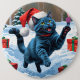 Eine anmutige russische Blue Cat läuft elegant durch die schneebedeckte Winterszene und trägt einen festlichen roten Weihnachtshut. Dieses charmante Design hebt den üppig blauen grauen Mantel der Rasse hervor, beeindruckt durch grüne Augen und sanfte Persönlichkeit, während es die Wärme und Freude der Ferienzeit einfängt. Ein schöner Wintermoment voller festlichen Beifall.