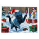 Eine anmutige russische Blue Cat läuft elegant durch die schneebedeckte Winterszene und trägt einen festlichen roten Weihnachtshut. Dieses charmante Design hebt den üppig blauen grauen Mantel der Rasse hervor, beeindruckt durch grüne Augen und sanfte Persönlichkeit, während es die Wärme und Freude der Ferienzeit einfängt. Ein schöner Wintermoment voller festlichen Beifall.