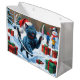 Russische blaue Katze mit Weihnachtsmütze Große Geschenktüte
