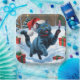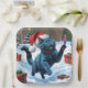 Russische blaue Katze mit Weihnachtsmütze Pappteller