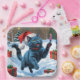 Eine anmutige russische Blue Cat läuft elegant durch die schneebedeckte Winterszene und trägt einen festlichen roten Weihnachtshut. Dieses charmante Design hebt den üppig blauen grauen Mantel der Rasse hervor, beeindruckt durch grüne Augen und sanfte Persönlichkeit, während es die Wärme und Freude der Ferienzeit einfängt. Ein schöner Wintermoment voller festlichen Beifall.