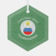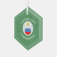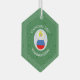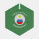 Dieser Engel ist in der horizontalen, weißen, blauen und roten Trikolore der russischen Flagge gekleidet, die hier auf einem sechseckigen Glasschmuck für die Weihnachtsdekoration oder die Feiertage zu sehen ist. Der russische Weihnachtsengel befindet sich in einem weißen Kreis von quadratischen Plätzen, umgeben von grünen quadratischen Plätzen. Sie können Ihren eigenen Text hinzufügen, oder mit dem Jahr und einem Namen personalisieren.