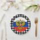 Teller: Rustikales Russland Party Teller mit russischer Flagge umgeben von schwarz-weiß Büffel karierte Muster - Liebe mein Land, festliche Dekoration, nationale Patrioten / Sportfans