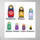 Sieben wunderschöne russische Nistpuppen in absteigender Größe zeigen die Wochentage in russischer Sprache