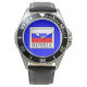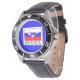 Herrenuhr aus Edelstahl mit schwarzem Lederarmband